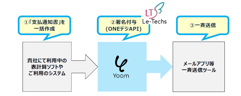 「ONEデジAPI」と「Yoom」の連携により、普段お使いのシステムへ「電子契約」や「書類の証明」機能を簡単に組み込めるようになりました。